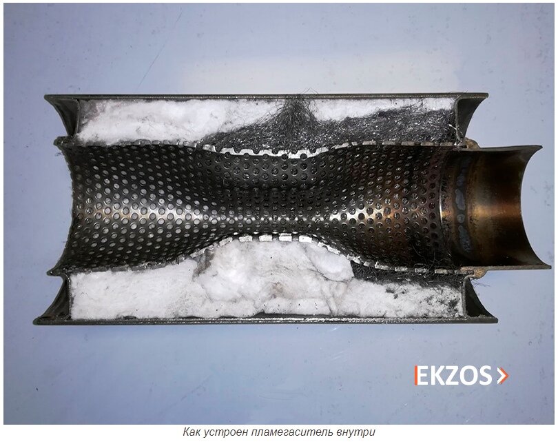 У качественного пламегасителя имеется двухслойный корпус, позволяющий гасить звуковую вибрационную волну. Установка такого элемента в глушителе позволит устранить неприятный дребезжащий звук в автомобиле.