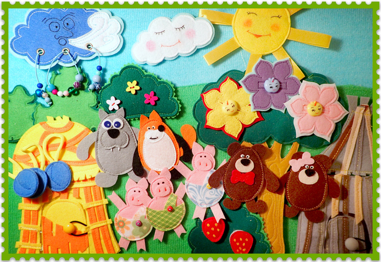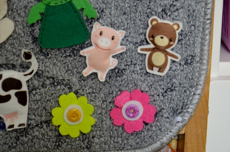 Можно сделать сказочный коврик, о нем я рассказываю в статье про сказку Репка с липучками.
