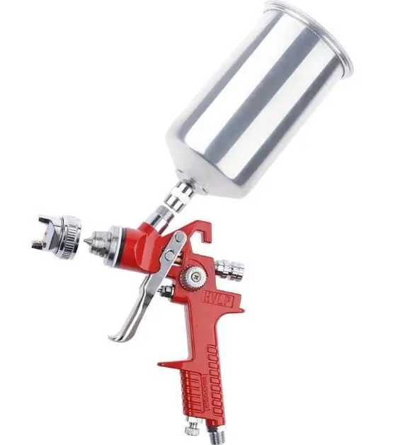 - HP – бюджетное, но устаревшее устройство, которое использует систему высокого давления. Из-за мощного потока воздуха происходит сильный выброс краски. Только 40% раствора достигает поверхности, 60% – превращается в красочный туман.