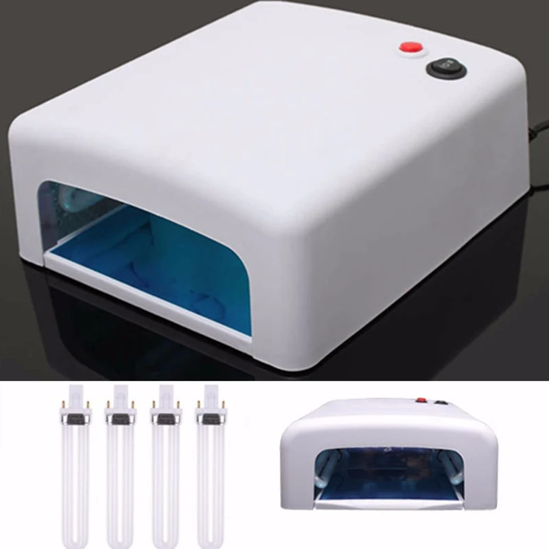 RuNail Professional GL-515 36 Вт Фото: RuNailВ топе рейтинга УФ-лампа 36 Вт от RuNail Professional. Эта лампа на рынке уже несколько лет и зарекомендовала себя как хорошая, но только для домашнего пользования. Для салона эта лампа не подойдет, потому что сушить лак в ней приходится по 2-3 минуты. У лампы есть два режима работы — 2 минуты и бесконечность. Во втором случае мастеру придется контролировать самому время сушки. У лампы четыре маленькие УФ-лампы, которые можно заменить, когда они перегорят. Нижняя панель выдвигается — благодаря этому ее легко чистить. Лампа представлена в нескольких цветах.