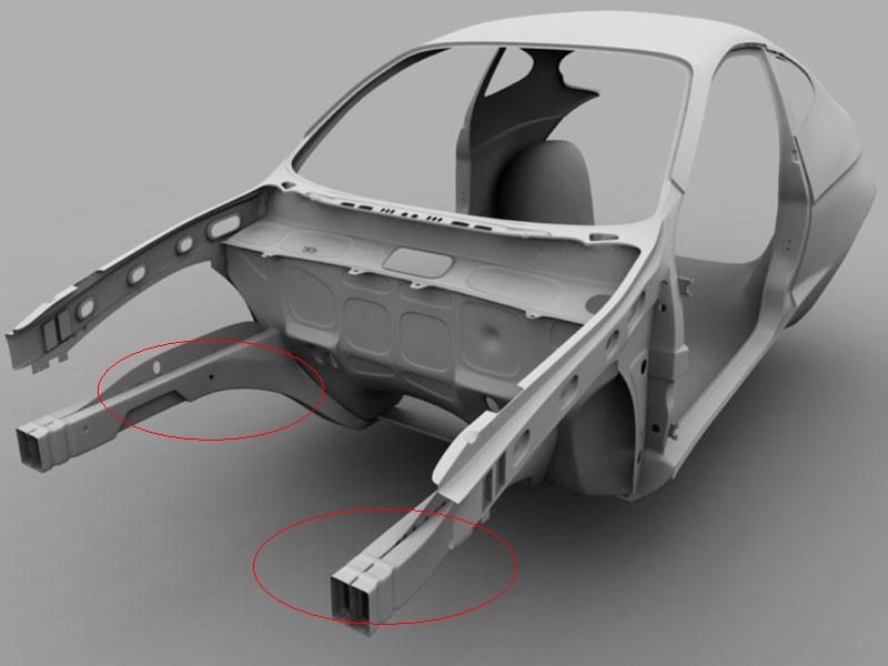 - созданием складок, обеспечивающих снимание детали в своеобразную гармошку при ДТП. При фронтальном или тыловом ударе эти места разрушаются, зато достигается поглощение максимума ударной энергии с уменьшением направленной в салон силы удара.