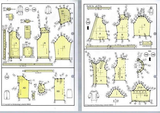 Портные старшего возраста делятся воспоминаниями о том, что подобные схемы были в советских журналах, там также был крестик посреди выкройки (только метр использовался другой), из них тоже получались хорошие чертежи.