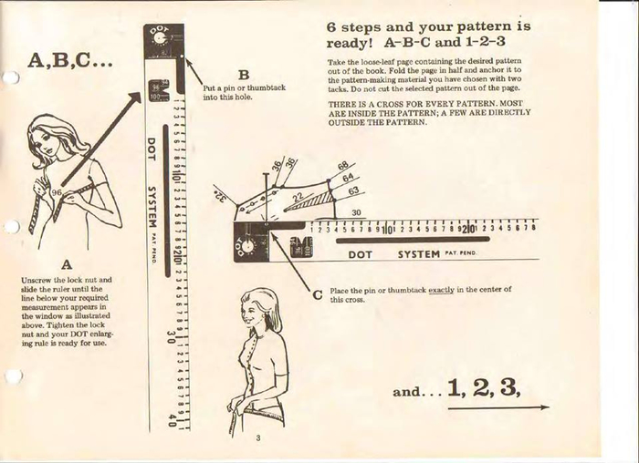 Сначала работа проводится с меркой ОТ. Когда все необходимые элементы приколоты к бумаге, шкалу необходимо прокручивать вокруг кнопки (иглы) до тех пор, пока она не соприкоснется со штрихом нужного числа. Оно указывает на место, где нужно поставить точку. Всем точкам соответствуют числа на ленте из комплекта.