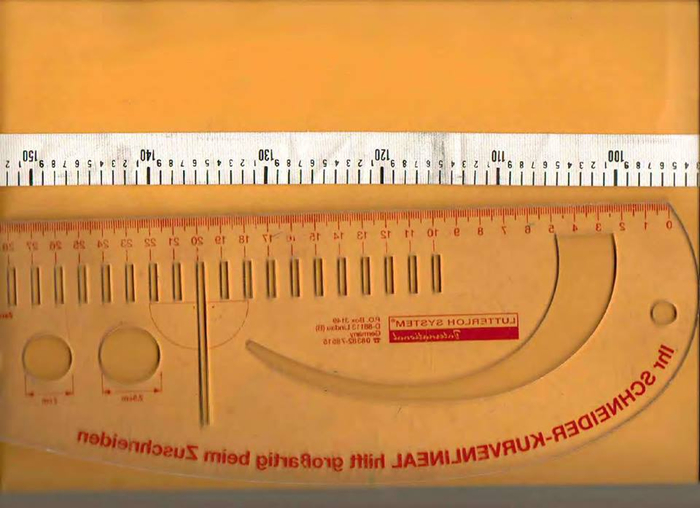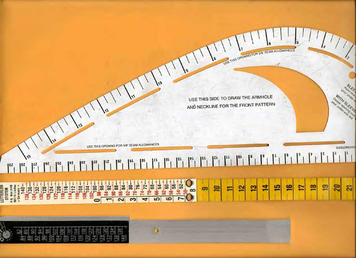 Там же имеется необычный метр, на него нанесена специальная шкала, позволяющая работать с выкройками. На этот метр производителем дается пожизненная гарантия. В папке-блоке находится 280 выкроек, они легко вынимаются из него и так же просто вставляются обратно, когда работа сделана. В посылке также имеются инструменты для работы с кроем: картонное лекало, акриловые линейки, кнопка-игла. Дополнительные лекала можно заказывать отдельно. Стоит сказать, что хотя набор стоит не дешево, он пользуется популярностью и у профессиональных швей, и у тех, кто только постигает азы конструирования одежды.