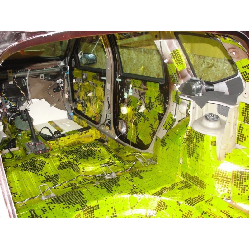 Поставляется листами 0,65х1 м, которые имеют самоклеющийся слой, защищённый от пыли и грязи бумагой. Имеет хорошую адгезию к металлическим и грунтованным поверхностям. Предназначен для изоляции сухих зон салона автомобиля. Устанавливается на потолок, двери, арки с внутренней стороны. Способствует созданию правильной акустики в салоне.