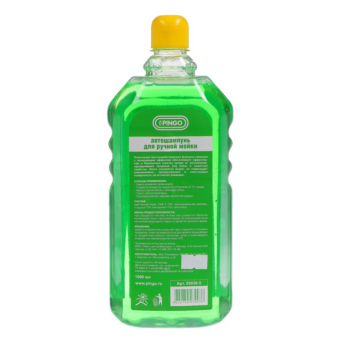 Шампунь наносится на всю поверхность машины на 2-3 минуты, после чего смывается под струей воды до полного исчезновения.Достоинства
