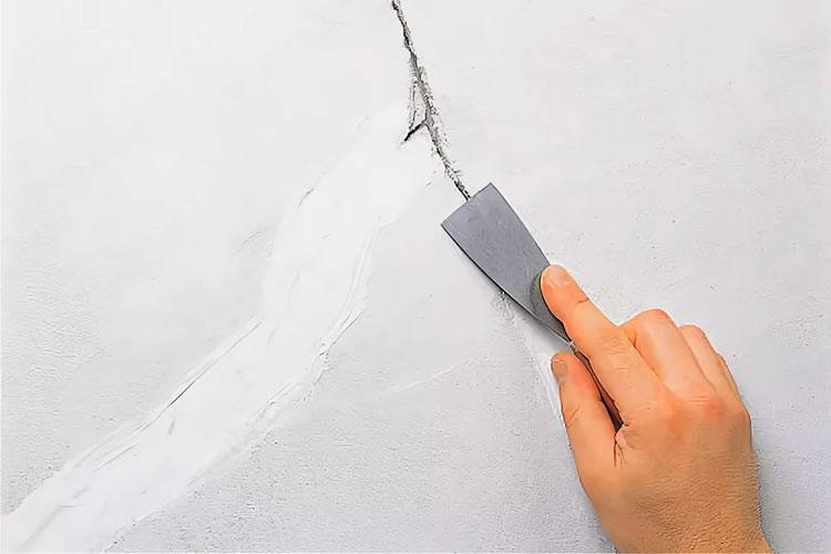 Грунтуют любые поверхности перед нанесением шпаклевки, но на бетонных стенах могут быть щели и глубокие трещины, которые требуется предварительно заполнить цементно-песчаным раствором или монтажной пеной.