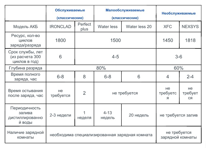 Срок службы АКБ в зависимости от типа