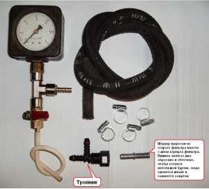 Для того, чтобы в случае возникновения неполадок можно было определить, какой именно давление топлива в автомобиле, можно использовать специальное приспособление — манометр.
