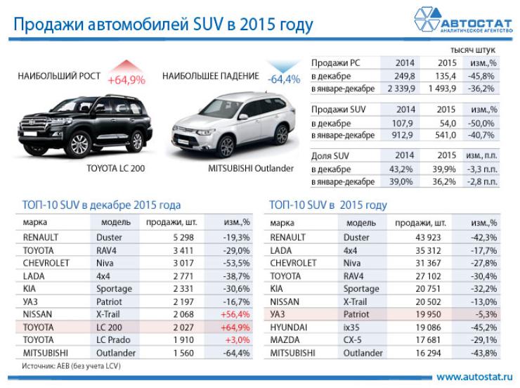 Автомобильный информационный сайт, Эдмундс перечислил самые востребованные на сегодняшний день модели внедорожников с колесами 4×4 и большой кабиной. Некоторые из перечисленных моделей включают Acura MDX 2016 г., Chevrolet Tahoe 2016 г., Chevrolet Traverse 2016 г., Honda CR-V 2016 г., Honda Pilot 2016 г., Jeep Grand Cherokee 2016 г., Land Range Rover 2016 г. и Lexus RX 350 2016 г.