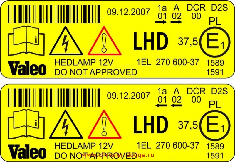 Например, если на фаре маркировка начинается с Е1, это означает, что фара была одобрена для использования в Германии.