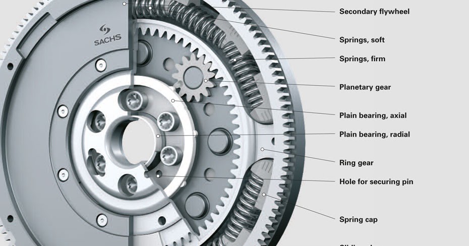 Инерционная масса маховика разделяется на первичную и вторичную. Эти массы соединяются друг с другом посредством высокомощной многопружинной демпфирующей системы.