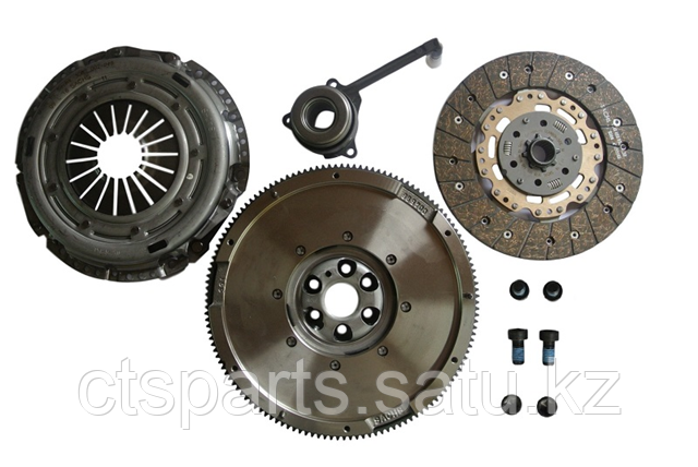 Комплект сцепления с диском включает в себя надежный двухмассовый маховик с ведомым диском сцепления, нажимным диском и болтами коленчатого вала, интегрированные в единый компактный блок для упрощения установки.