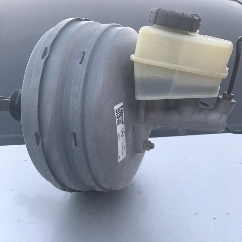 На многих автомобилях главный цилиндр работает в паре с усилителем тормозов. Усилитель тормозов крепится к брандмауэру, как правило, перед рулевым колесом, и к нему присоединяется главный цилиндр. Весь смысл усилителя тормозов в том, чтобы облегчить нажатие на педаль тормоза и замедлить или остановить автомобиль.