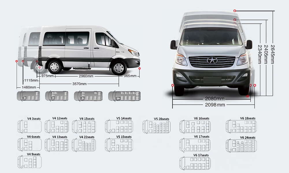 | Mercedes Sprinter (XLWB) | 7.3 | 2.4 | 2.8, 3.0 |