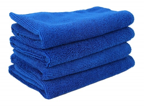 Синяя салфетка из микрофибры для очистки.
