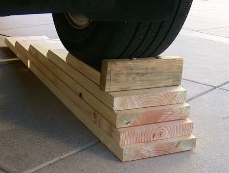 Если же в гараже места совсем мало можно сделать мини-эстакаду, которая будет лишь частично поднимать автомобиль. При желании, сделать ее можно из дерева. Это также экономичный тип конструкций для поднятия автомобиля.