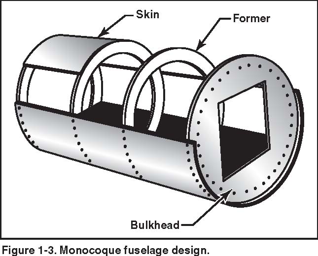Прочность фюзеляжа в основном зависит от прочности обшивки или обшивки, несущей основные нагрузки. Дизайн можно разделить на два класса: