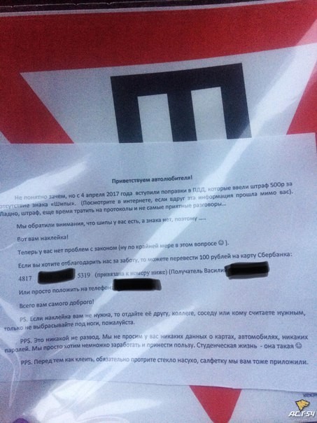— Если вдруг введут запрет или плату за въезд куда-либо на шипах, и камеры научат эти наклейки распознавать, то и требования к размерам букв обязательно добавят. —