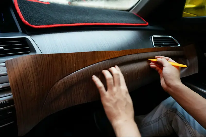 Наклейка пленки на пластик в салоне автомобиля — АвтоТоп