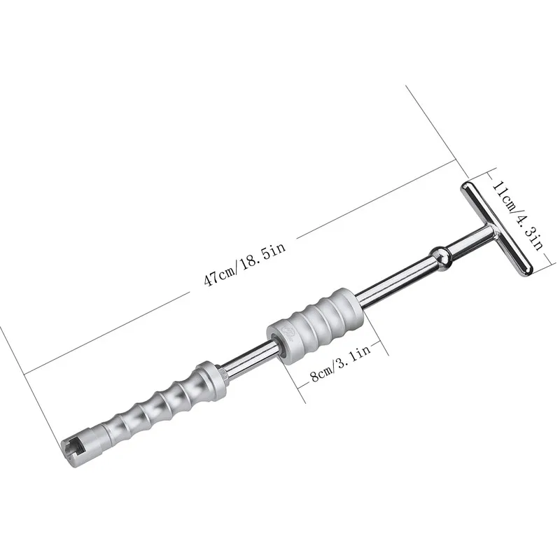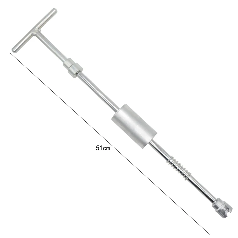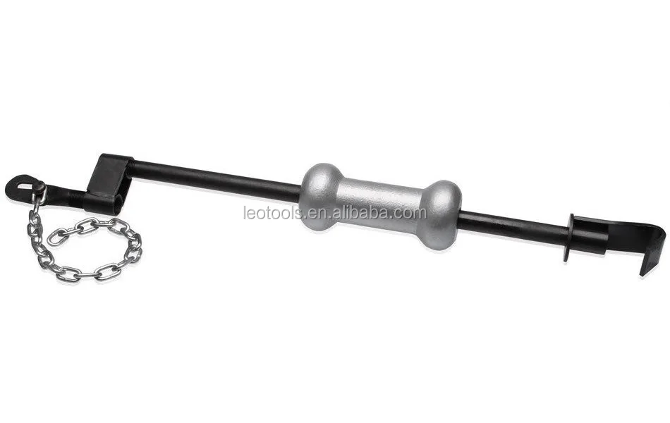 Назначение этого приспособления – создание вытягивающего усилия на поверхности с целью разравнивания деформированной плоскости или снятия запрессованной детали. Если стандартная кувалда состоит лишь с рукоятки и головки, то устройство данного инструмента сравнительно сложнее. С целью разобраться, что это такое обратный молоток, рассмотрим конструкцию самой простой и распространенной механической модели: