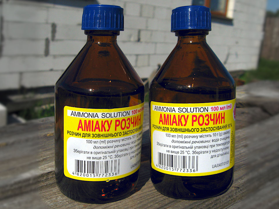 Если полведра раствора не нужно, то можно уменьшить количество. На стакан воды будет достаточно добавить несколько капель нашатыря; -