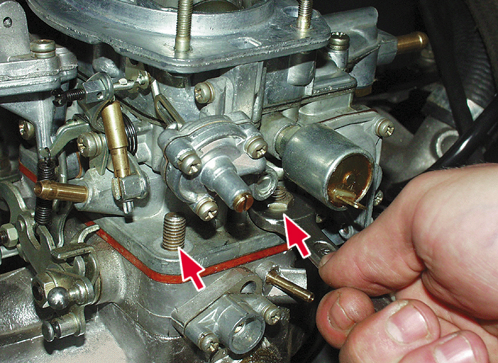 Есть по крайней мере два способа выхода из положения выключения холостого хода: плавно или внезапно. Если дроссельная заслонка переходит в положение выключения холостого хода и двигатель спотыкается, цепи холостого хода и щели передачи, вероятно, слишком бедны. Чтобы исправить это состояние, либо слегка открутите все четыре регулировочных винта смеси холостого хода, чтобы обогатить систему, либо увеличьте ограничители холостого хода в дозирующих блоках. С другой стороны, если колебания возникают при быстром ускорении, увеличьте размер помповых стрелков.Стрелки насоса служат только для подачи первоначального количества топлива, и вместе с контурами холостого хода и переходными пазами они обеспечивают преимущественную подачу топлива к двигателю до тех пор, пока основные контуры не будут работать через наддувную трубку Вентури.