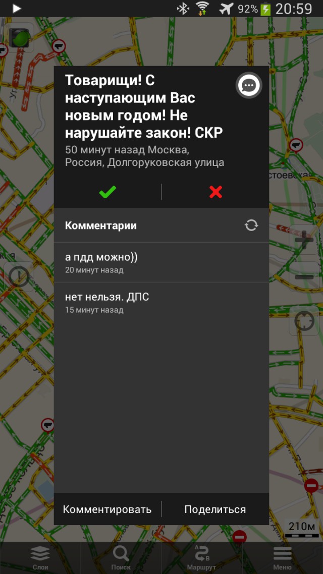 - Возможность подтверждения предупреждений других пользователей, когда вы путешествуете по тому же маршруту.