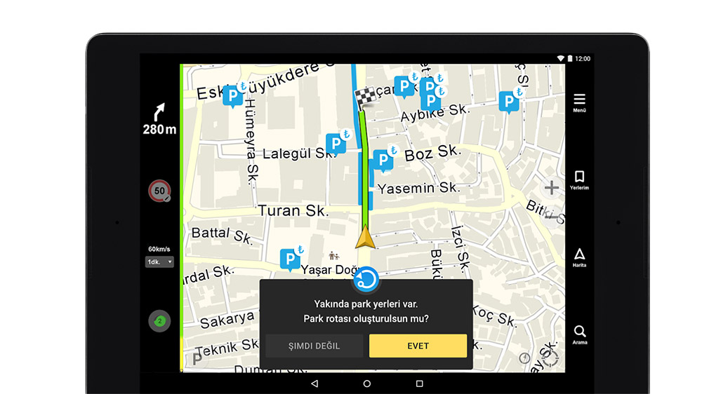 Прокладка маршрута, ведение к цели, оповещения — всё это работает в Навителе очень хорошо. Единственный минус в том, что не предусмотрен голосовой поиск. В целом это удобная навигация для дальних поездок, без доступа к интернету.
