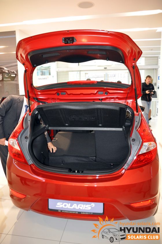 Седан изначально не предназначен для перевозки больших грузов, но, тем не менее, Хундай Солярис обладает достойным по размерам отсеком для этого.
