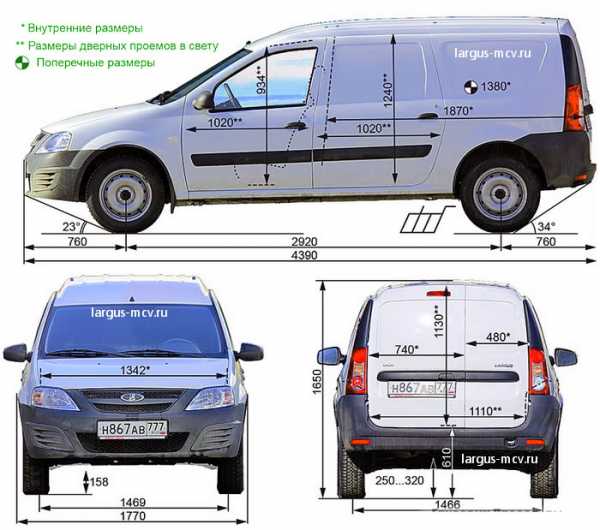 Линейные размеры грузового отсека фургона Лада Ларгус