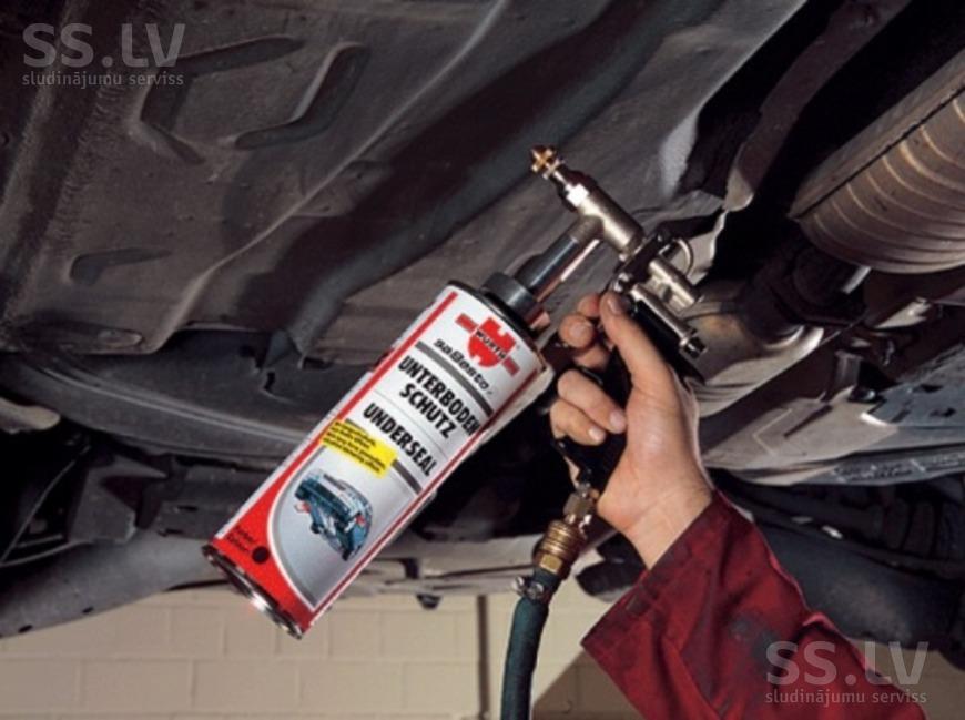 • Обработка скрытых полостей нижней части — основания кузова (лонжероны, пороги, усилители пола, швы, полые кронштейны подвески, поперечные балки)