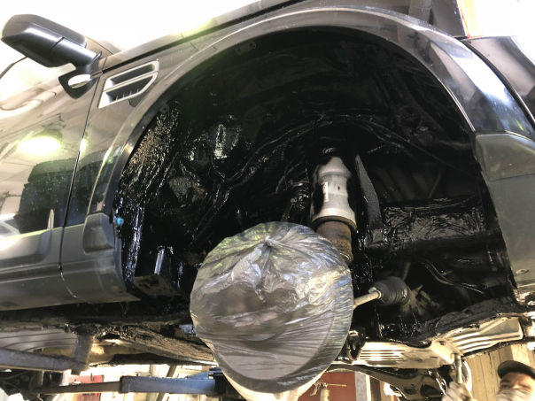 Они обеспечивают дополнительную шумоизоляцию, обеспечат лучшую стойкость к механическим нагрузкам. - Днище автомобиля мы обрабатываем битумным антикором с небольшой вязкостью. Он сохраняет свои свойства даже при суровом морозе, не твердеет и не растрескивается.