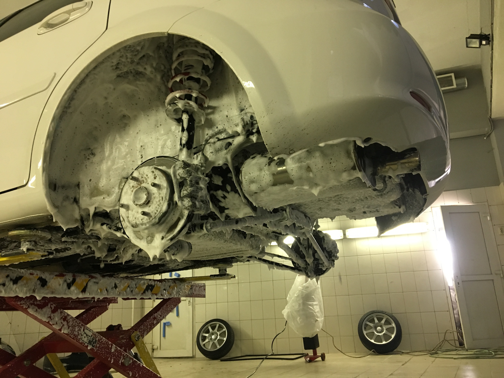 Помните, чем лучше отмоете и просушите, тем дольше продержаться нанесенные составы.Также не помешает защитный костюм для выполнения антикоррозионной обработки автомобиля или элементарные средства безопасности — перчатки, головной убор.