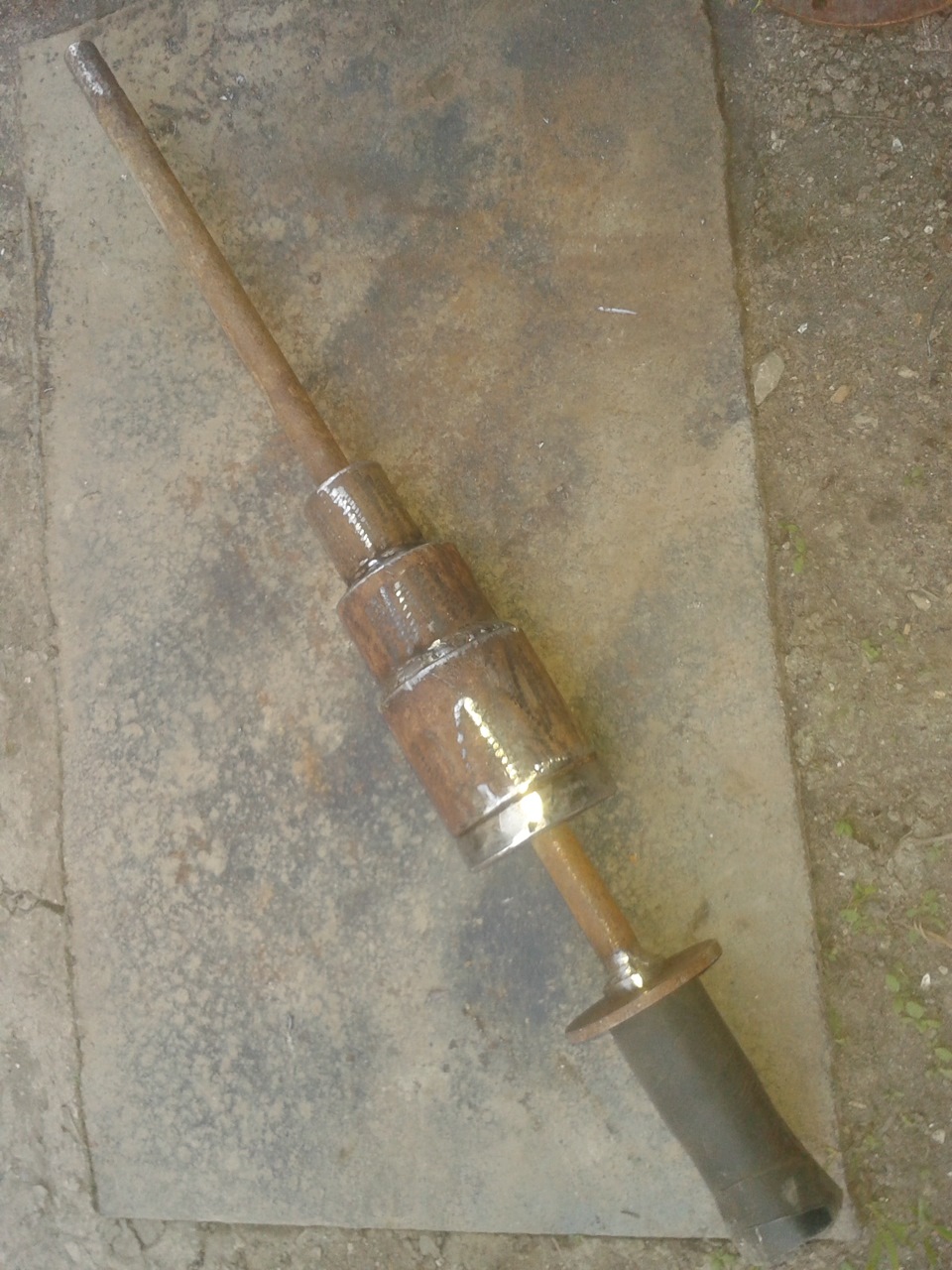 Следите, чтобы внутренняя трубка была большего сечения, чем основной штырь инструмента: груз для обратного молотка своими руками всегда должен свободно передвигаться по стержню.
