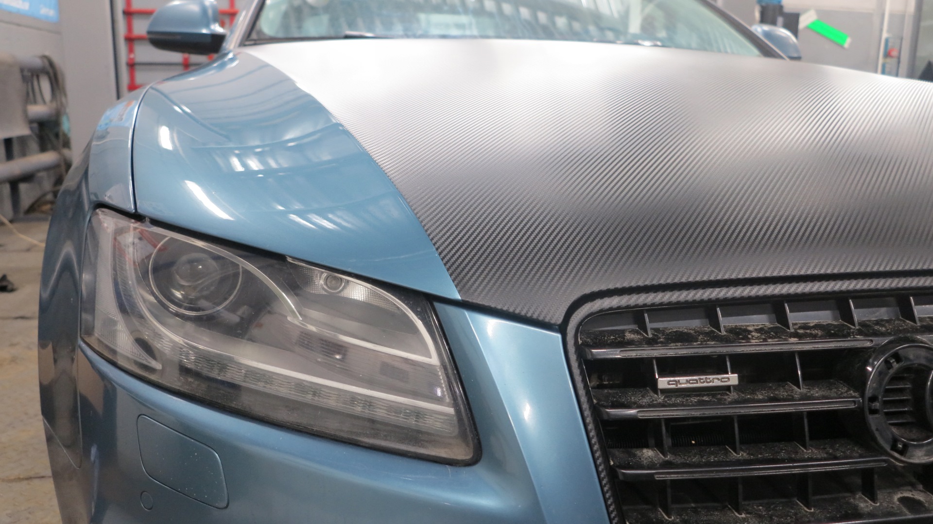 В большинстве случаев клиенты хотят обклеить капот своего автомобиля пленкой с целью изменения внешнего вида автомобиля. Если изначально в моду вошли текстурированные покрытия, имитирующие углепластик (пленки «под карбон»), то сейчас с распространением технологий широкоформатной цифровой печати все популярнее становится пленка с напечатанными под заказ клиента изображениями.