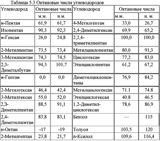 - Увеличение октанового числа ароматических углеводородов при том же количестве атомов углерода.