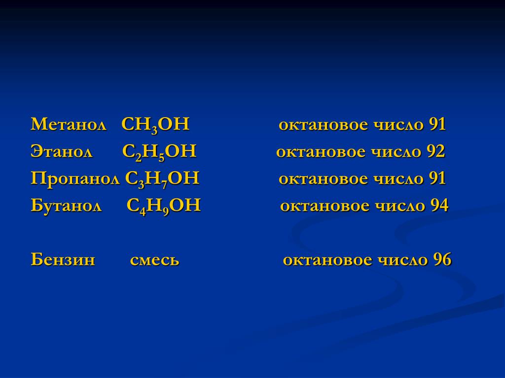 Можно добавлять в бензин высокооктановые спирты и эфиры, что требует больших капиталовложений на организацию многотоннажного промышленного производства этих синтетических компонентов.