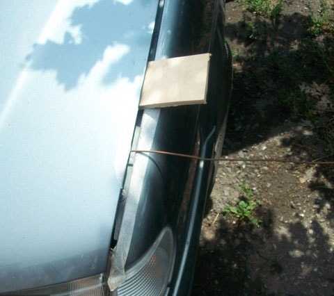 Существует второй вариант, но для него необходимо терпение и некоторая сноровка. Используется он исключительно ворами аккумуляторов. Итак, со стороны аккумулятора необходимо приподнять капот и подложить в щель любой предмет. Важно не повредить лакокрасочное покрытие крышки и крыла. Далее берется длинная проволока с загнутым кончиком, при помощи которой заходим в подкапотное пространство и пробуем потянуть рычажок.