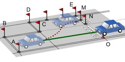 Площадка для выполнения упражнения имитирует участок дороги, с припаркованными автомобилями, между которыми необходимо припарковать Ваш автомобиль.