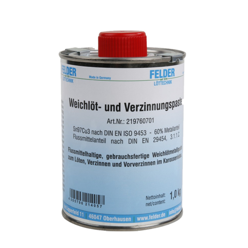 Паста для лужения Felder (1кг) бессвинцовая — паста S-Sn97Cu3 флюс фелдер 1 кг для покрытия железа тонким слоем оловом для последующего наплавления олова или пайки оловом — 59886