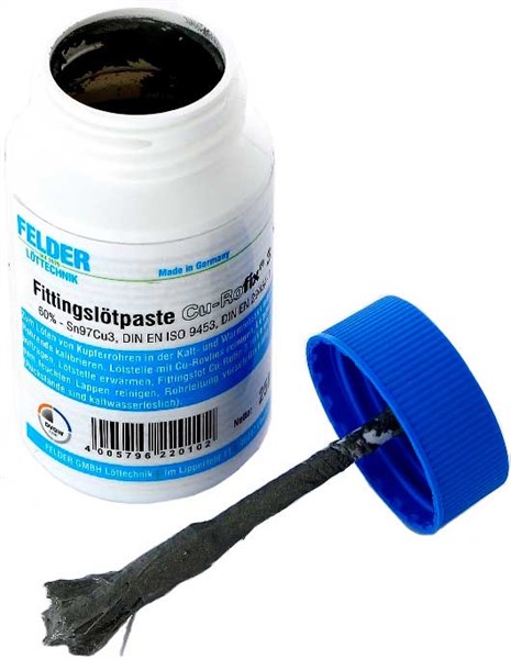 Паста для лужения Felder (0,25кг) бессвинцовая — паста S-Sn97Cu3 флюс фелдер 250г для покрытия железа тонким слоем оловом для последующего наплавления олова или пайки оловом — 59884