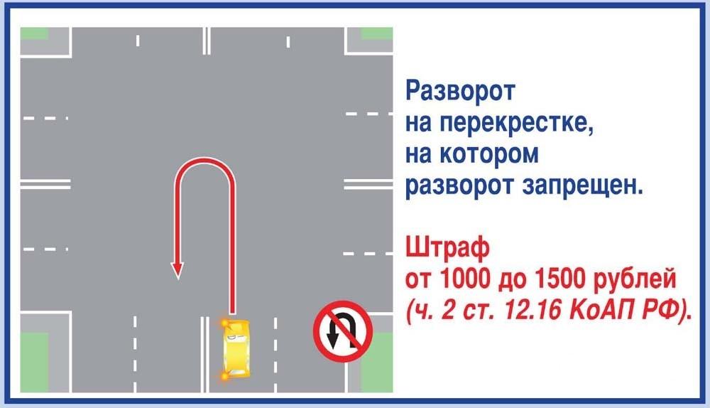 На самом деле, разворот может быть запрещен только в том случае, если перед перекрестком висит знак, обязывающий водителя проехать на данном участке дороги прямо. Если такого знака нет, то и разворачиваться можно, сколько угодно.