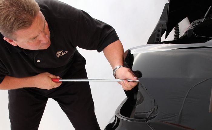 Удаление вмятин без покраски — это искусство удаления незначительных вмятин, вмятин на дверях и повреждений от града на автомобилях без использования шпатлевки или краски. Это процесс, при котором вмятина обрабатывается с нижней стороны панели квалифицированным специалистом с использованием специальных инструментов