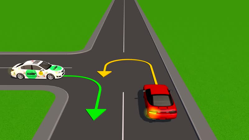Когда вы поворачиваете налево, вы должны уступить дорогу встречному транспорту. На четырехсторонней остановке водители, прибывающие одновременно, должны уступить право проезда водителю справа.