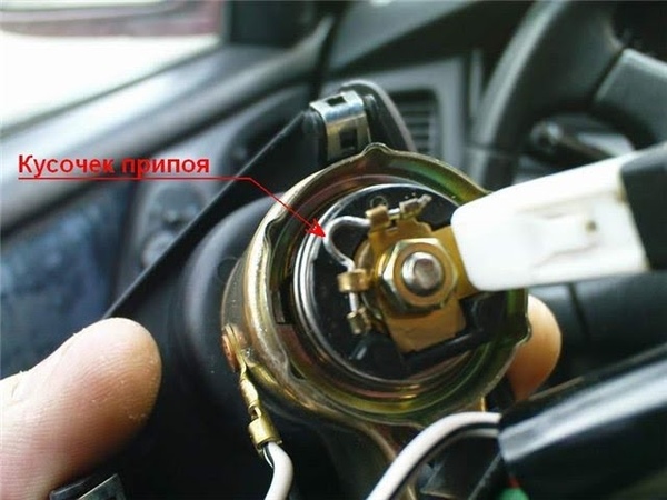 Чаще всего он имеет изогнутую под 90 градусов форму и соединяет контакты прикуривателя. Если перегорел он, то проблему можно решить с помощью паяльника либо замены корпуса. В большинстве случаев достаточно припаять либо прикрутить кусок проволоки (алюминиевой сечением 1,5 мм2), которая и будет замыкать контакты и выполнять роль предохранителя.