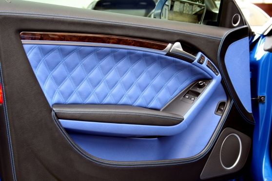 - Индивидуальный дизайн. Любые сочетания материалов на Ваш выбор – кожа + алькантара, кожа + карбон. Возможна перетяжка дверных вставок экзотической кожей. Также мы можем изготовить деревянные вставки в двери автомобиля.