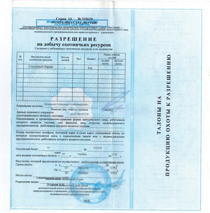 охотничье удостоверение при себе во время поездки в охотничьи угодья или из них. Разрешена охота патронами с полым носом.