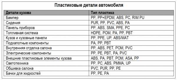 Итак, рассмотрим наиболее часто используемые в автомобилях типы пластиков.
