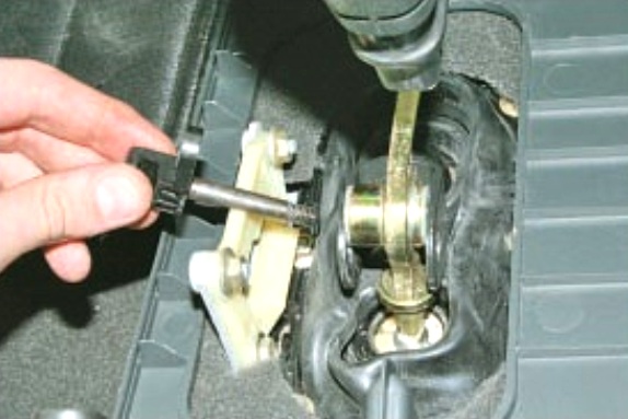 Закрепите более жестко кулису на рычаге переключения, выберите люфт, ведь именно она отвечает за фиксацию рычага в нужном положении. Для этого вам необходимо поставить машину на яму. Откроете крышку и проведите ревизию. Особое внимание уделите состоянию зубчатого зацепления.
